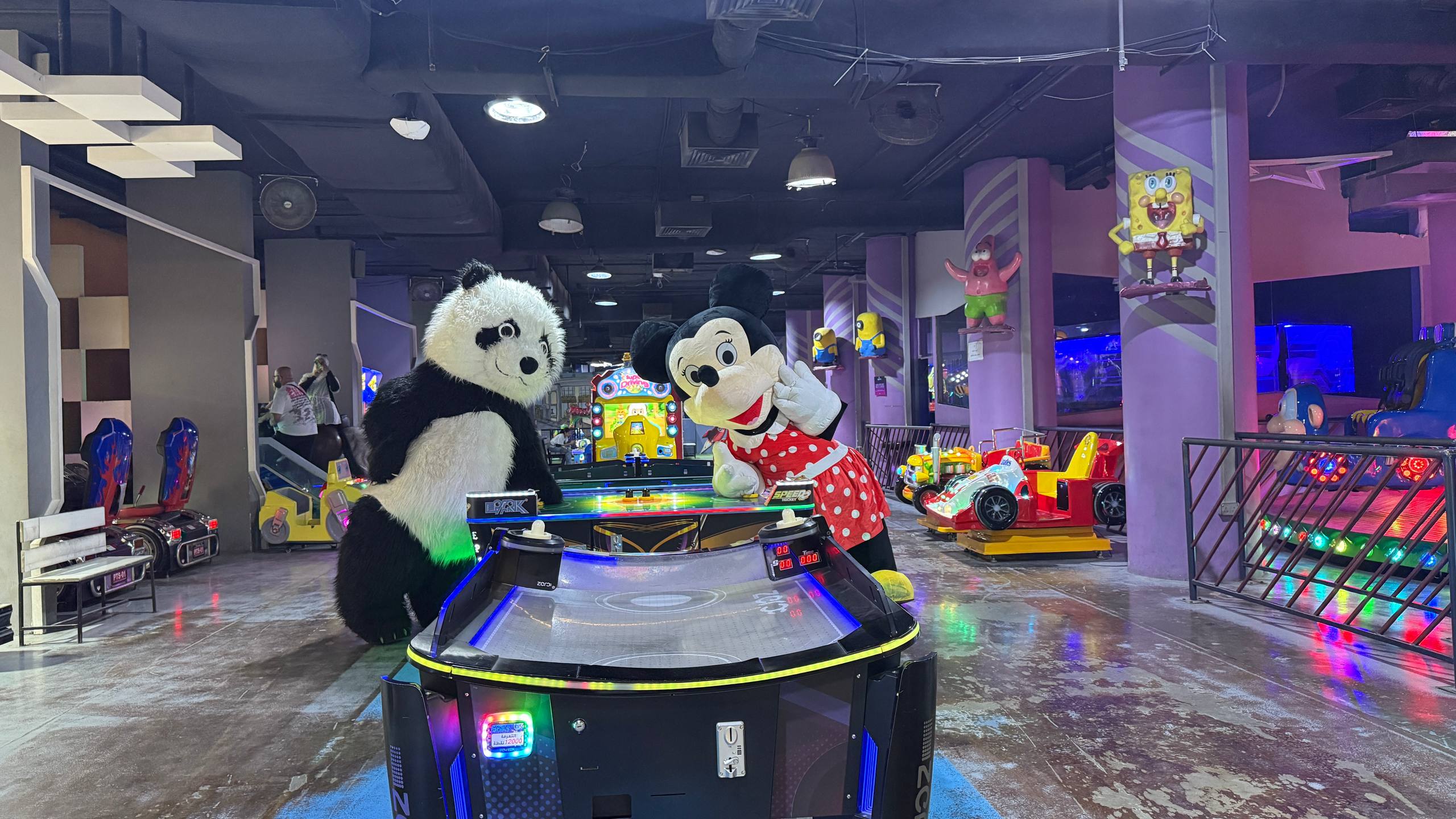 وألعاب الفيديو الممتعة في صالة مليئة بالمرح